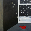 autour du sujet traité: une fenêtre, un aquarium, une scène de théâtre. Au fond, Simon Blau nous invite à partager son univers intérieur, son image du quotidien qui, tout à coup, semble plus léger, gaîment coloré de bleu, vert, rouge finement modulés. »